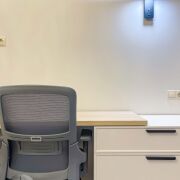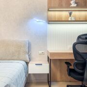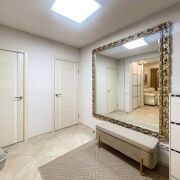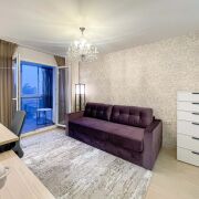 Третья комната может быть использована под детскую/кабинет/гостевую спальню. Она имеет просторную гардеробную, выход на лоджию с видом на лес и рабочее место.