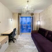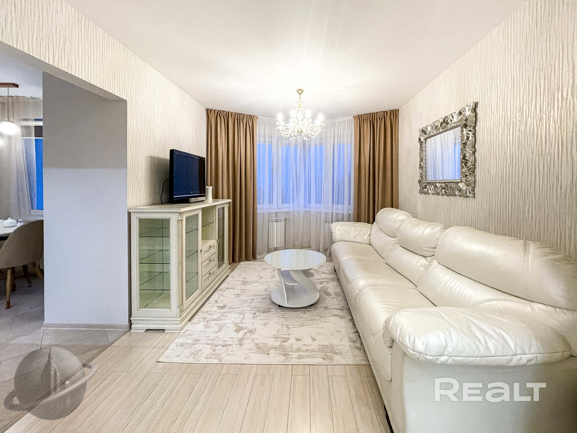 Планировка представлена гостиной с отдельной кухней, укомплектованной всей необходимой техникой, "хозяйской" спальней с вместительным шкафом-купе и рабочим местом.