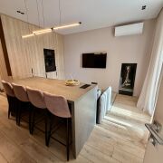 · Премиальная начинка: Дом наполнен техникой премиум-класса. Тихую работу посудомойки и мощный холод холодильника вы оцените сразу. В ванной комнате — дорогая сантехника, которая радует глаз.