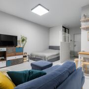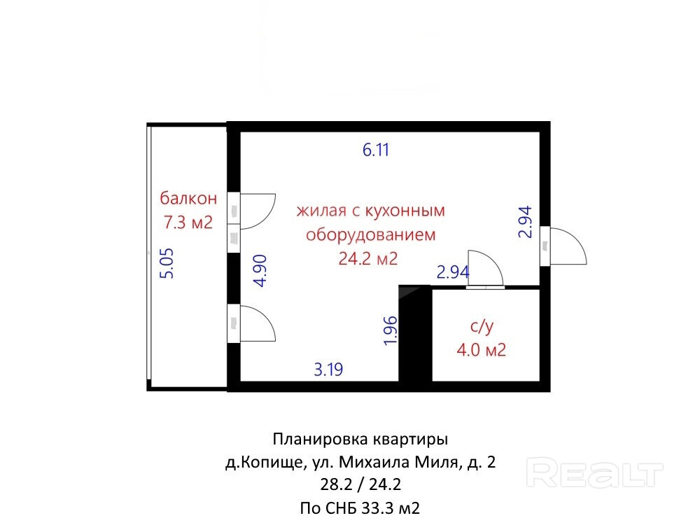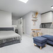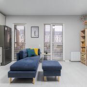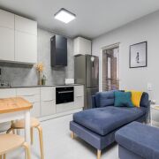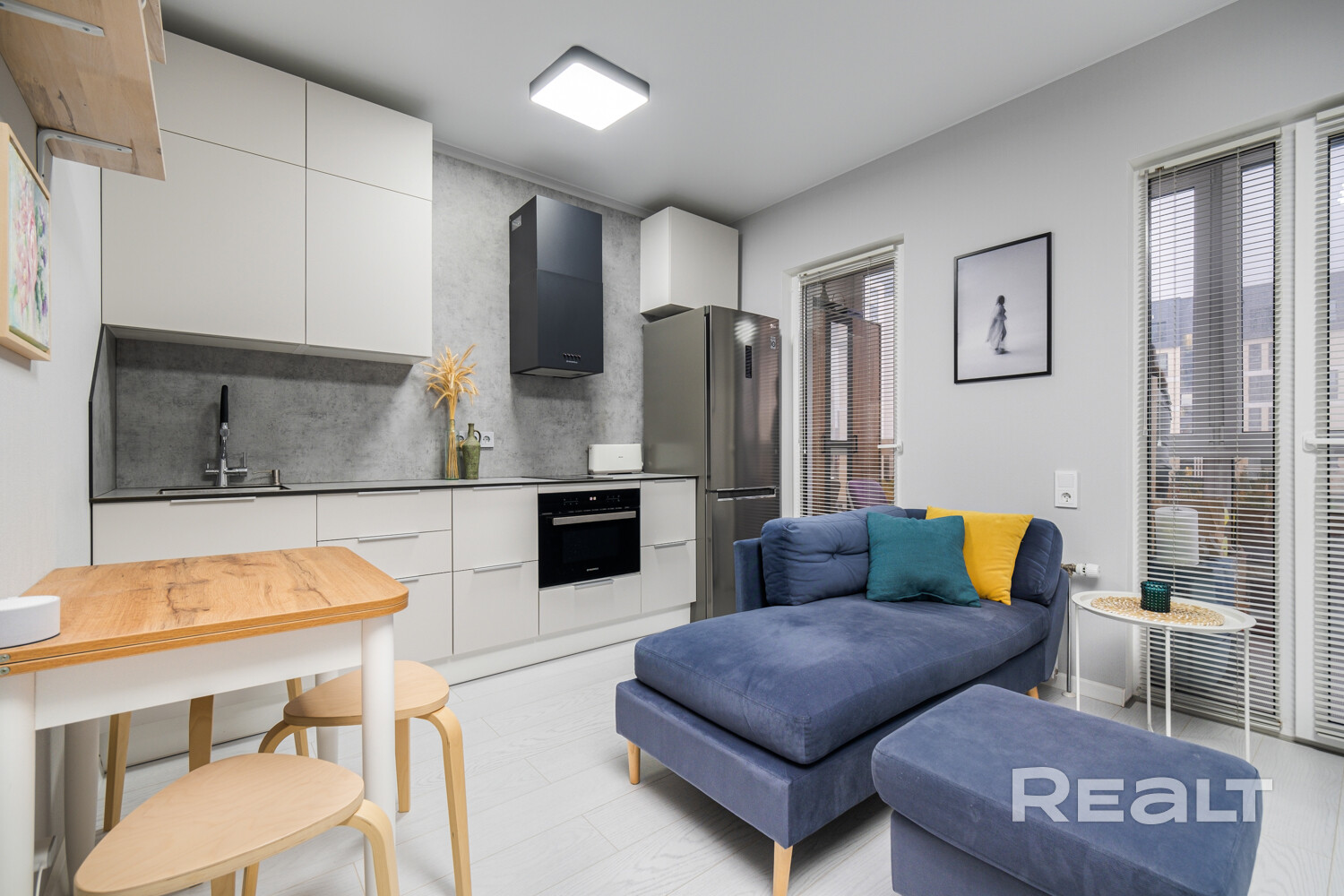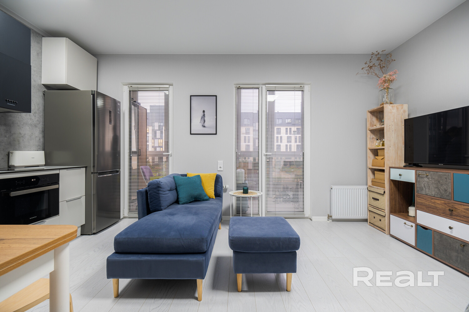 Стильная студия в ЖК «Новая Боровая», Минск Полностью обустроенная 1-комнатная студия (33,3 м²) с евроремонтом в современном комплексе. Светлая квартира на 3 этаже с потолками 2,63 м и просторным балконом 7,3 м² с красивым видом. Вся мебель и техника включены: кровать, диван, стиральная машина, кухня MAUNFELD, холодильник LG. Идеально для одного или двоих. Круглосуточная охрана, Wi-Fi во дворе, велопарковка, поликлиники. Удобное расположение близ Минска. Готово к заселению. Без животных.