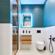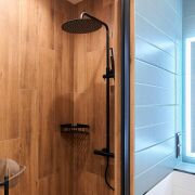 Сан. узел совмещённый: бытовой шкаф, зеркало с подсветкой, полотенцесушитель и душевая кабина.