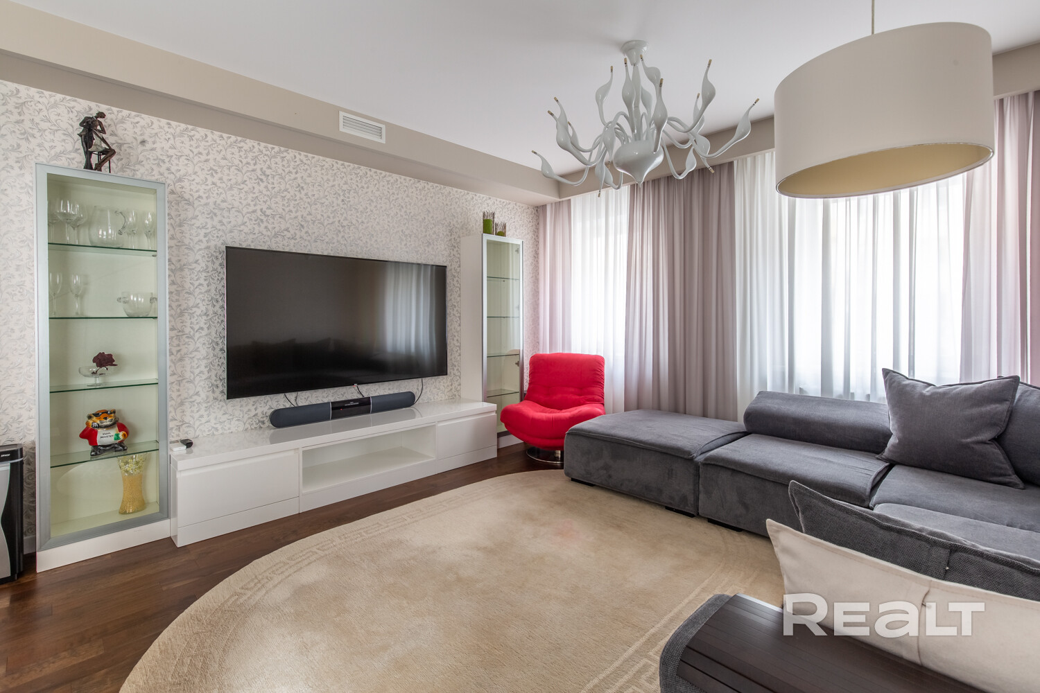 Сдаётся стильная 5-комнатная квартира площадью 130 м2 по адресу: ул. Червякова, 5 — в одном из самых зелёных и престижных районов столицы, рядом с Комсомольским озером и парком Победы.