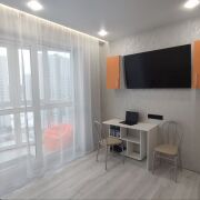 В современном жилом комплексе Minsk World стильная, светлая и уютная квартира расположена. Идеальное сочетание стиля, комфорта и удобного расположения. Квартира с дизайнерским ремонтом, проработан каждый метр полезной площади. Отделка из качественных материалов.Вместительный встроенный шкаф в прихожей. Установлена качественная, импортная сантехника. На период отключения горячей воды установлен водонагреватель. Бесшумные лифты. Удобный выезд на 2-е транспортное кольцо г. Минска ул. Аэродромная.