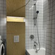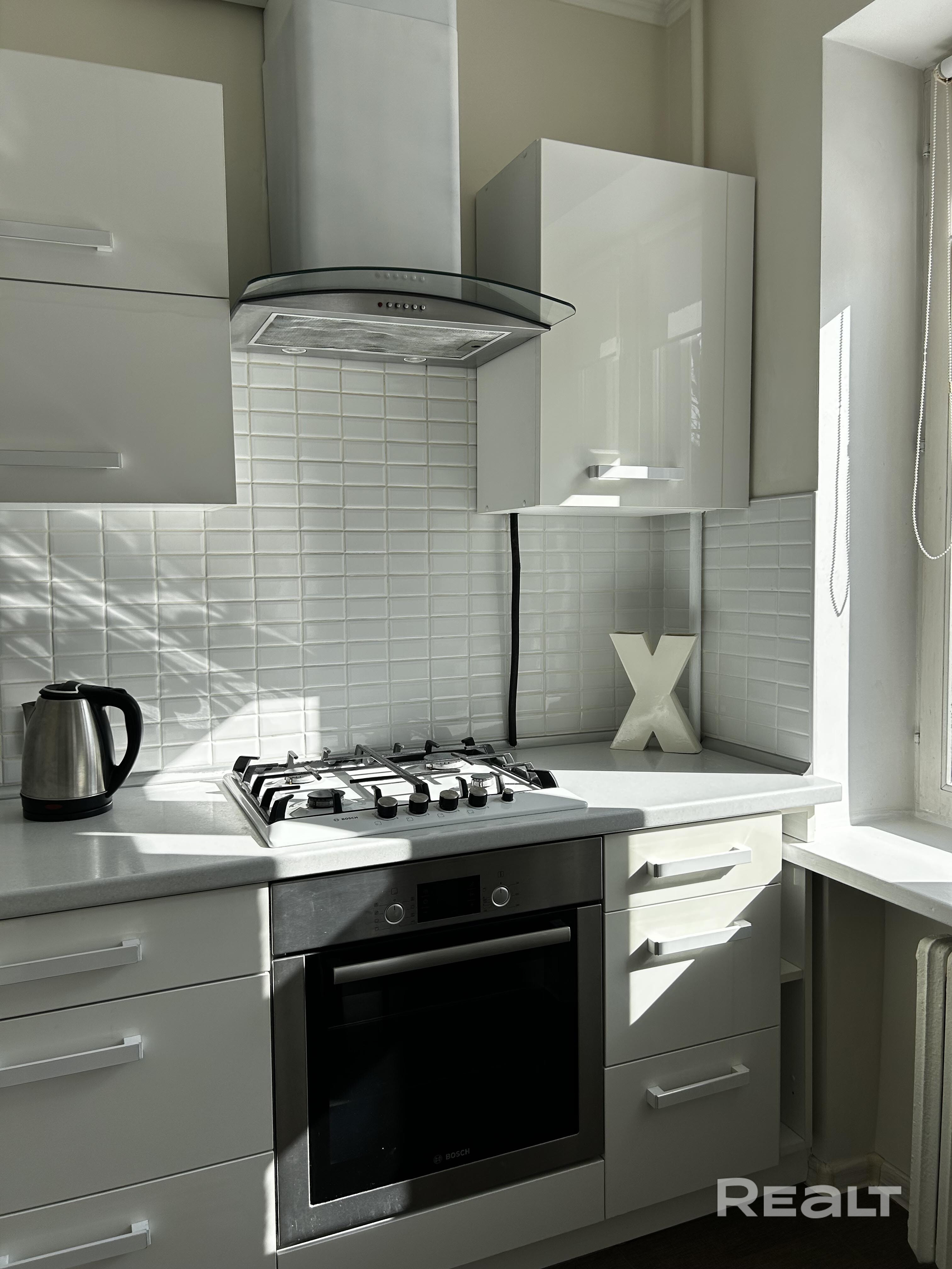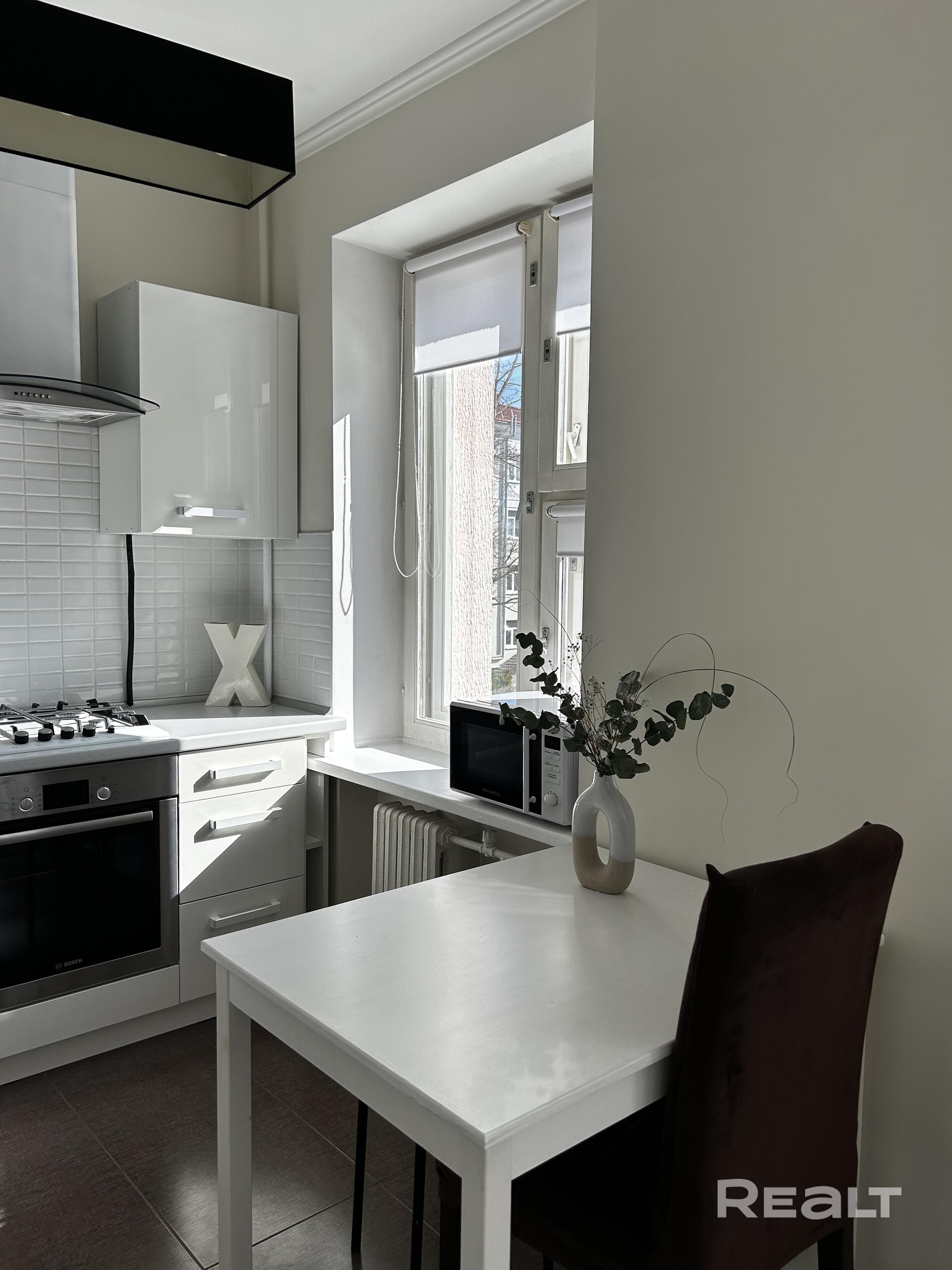 Светлая квартира с характером. Отдельная спальня с двуспальной кроватью из массива сосны и вместительной гардеробной. Кухня изолирована и при необходимости скрывается за раздвижной перегородкой. В гостиной — большой письменный стол, отлично подойдет для работы из дома. В совмещенном санузле мебель выполнена из натуральной березовой фанеры. Только на длительный срок. Гражданам РБ. Не студентам. Без животных. Залог - месяц оплаты. + коммунальные платежи. Прописан собственник
