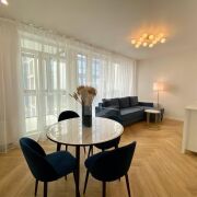 В квартире есть все необходимое для комфортного проживания. Есть также посудомоечная машина и проточный водонагреватель, стиральная машина с функцией сушки