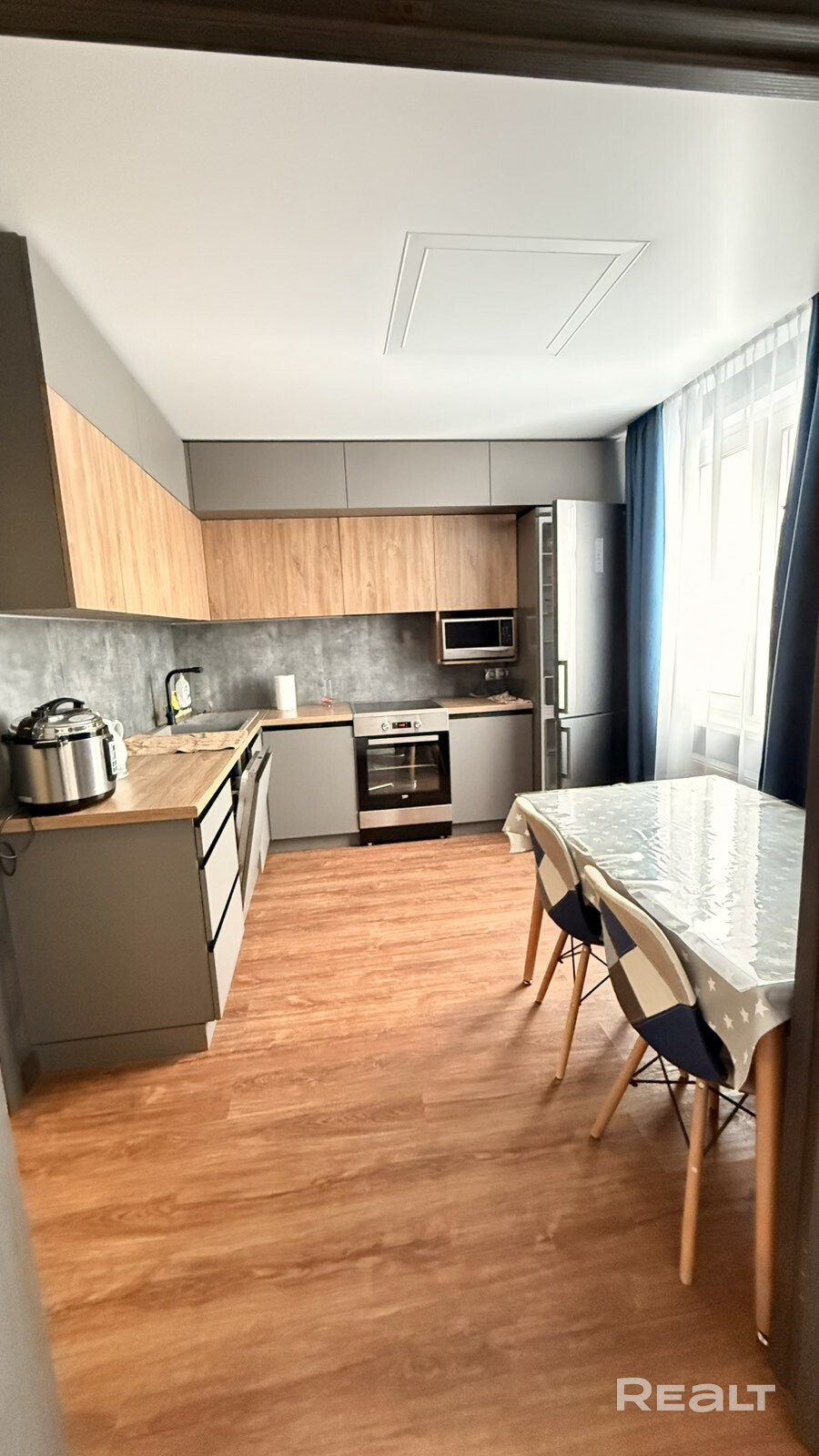 Просторная квартира с современным ремонтом и необходимой техникой и мебелью сдается для семьи на длительный срок.
