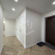 Интерьер: Выполнен в светлых, натуральных тонах, что создает атмосферу простора и спокойствия. Уложен качественный ламинат, стены оформлены стильными обоями и декоративным камнем.