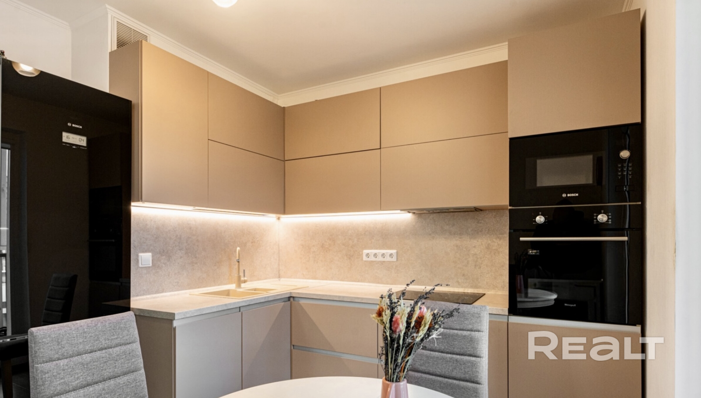 Сдаётся светлая, уютная 1-комнатая квартира в ЖК Ноавя Боровая. Общая площадь по СНБ - 41,3 кв.м., общая площадь (без учета лоджии) - 38,6 кв.м., жилая - 20,3 кв.м., кухня - 10,2 кв.м. Квартира с ремонтом, с новой мебелью, с большой гардеробной, полностью готова к проживанию. В тамбуре всего две квартиры. Сдаётся первый раз. Планировка квартиры хорошо продумана. Регулярное транспортное сообщение (автобус - 15 минут до станции метро "Уручье", маршрутное такси - 10 минут до станции метро "Восток