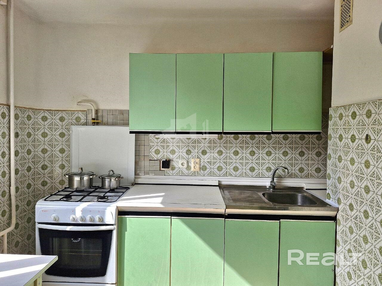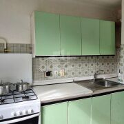Квартира оснащена необходимой бытовой техникой: газовая плита с духовкой и холодильником — всё для удобного приготовления и хранения продуктов.