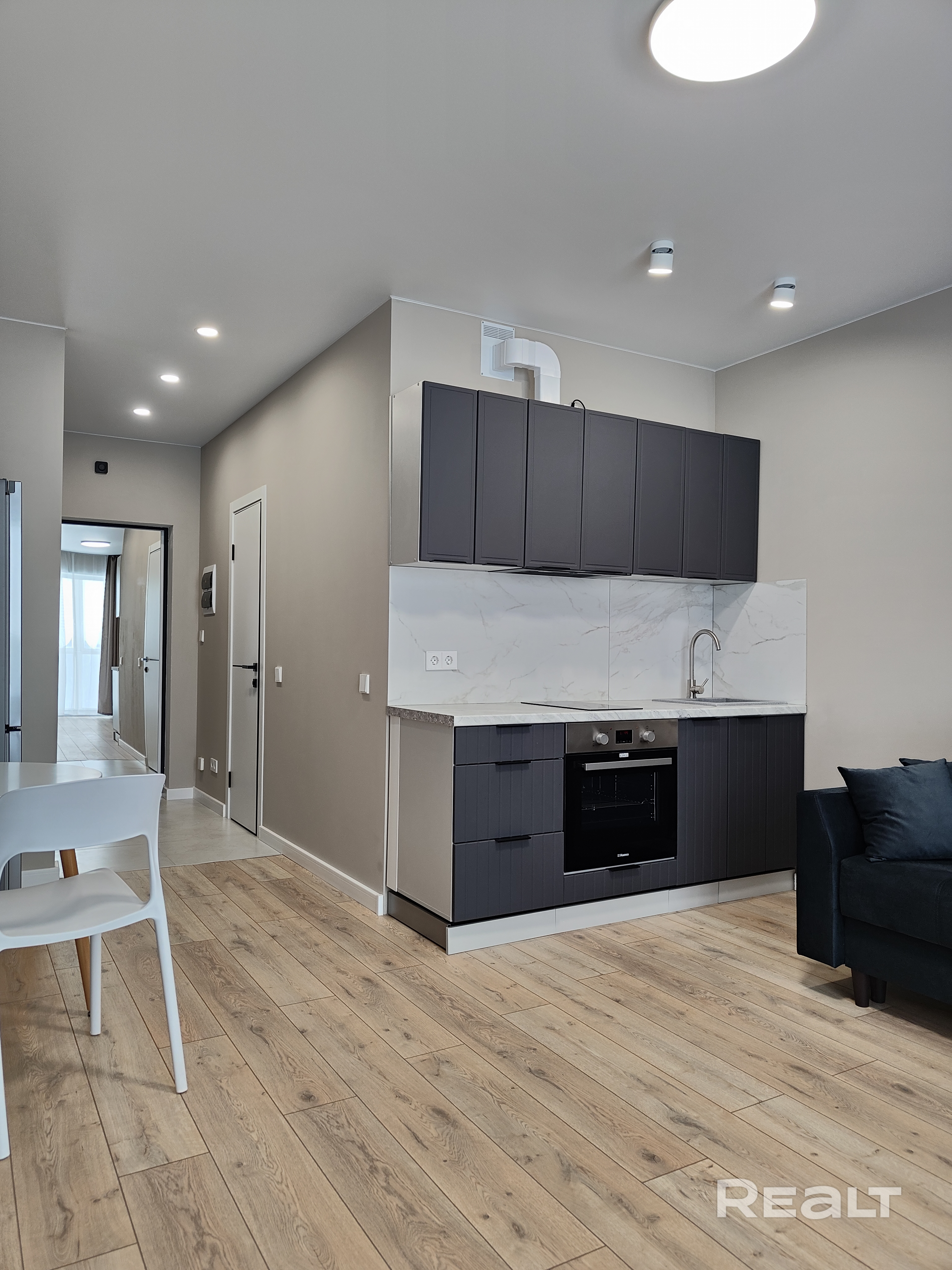 Однокомнатная квартира. Общая площадь 33м.кв. Базовый набор мебели: диван, тумба под телевизор, кухонный стол/стулья. Бытовая техника: холодильник, духовая шкаф, вытяжка, варочная панель, стиральная машина, телевизор. На длительный срок. Договор.