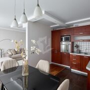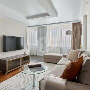 • Кухня-гостиная: техника премиум (посудомойка, духовка, варочная панель, холодильник, СВЧ), ТВ, кондиционер.