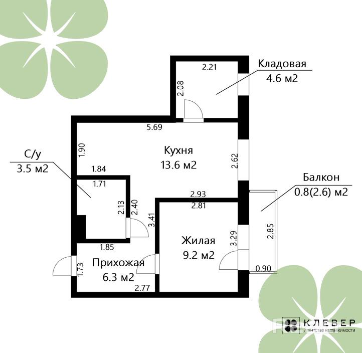 13.6 м²