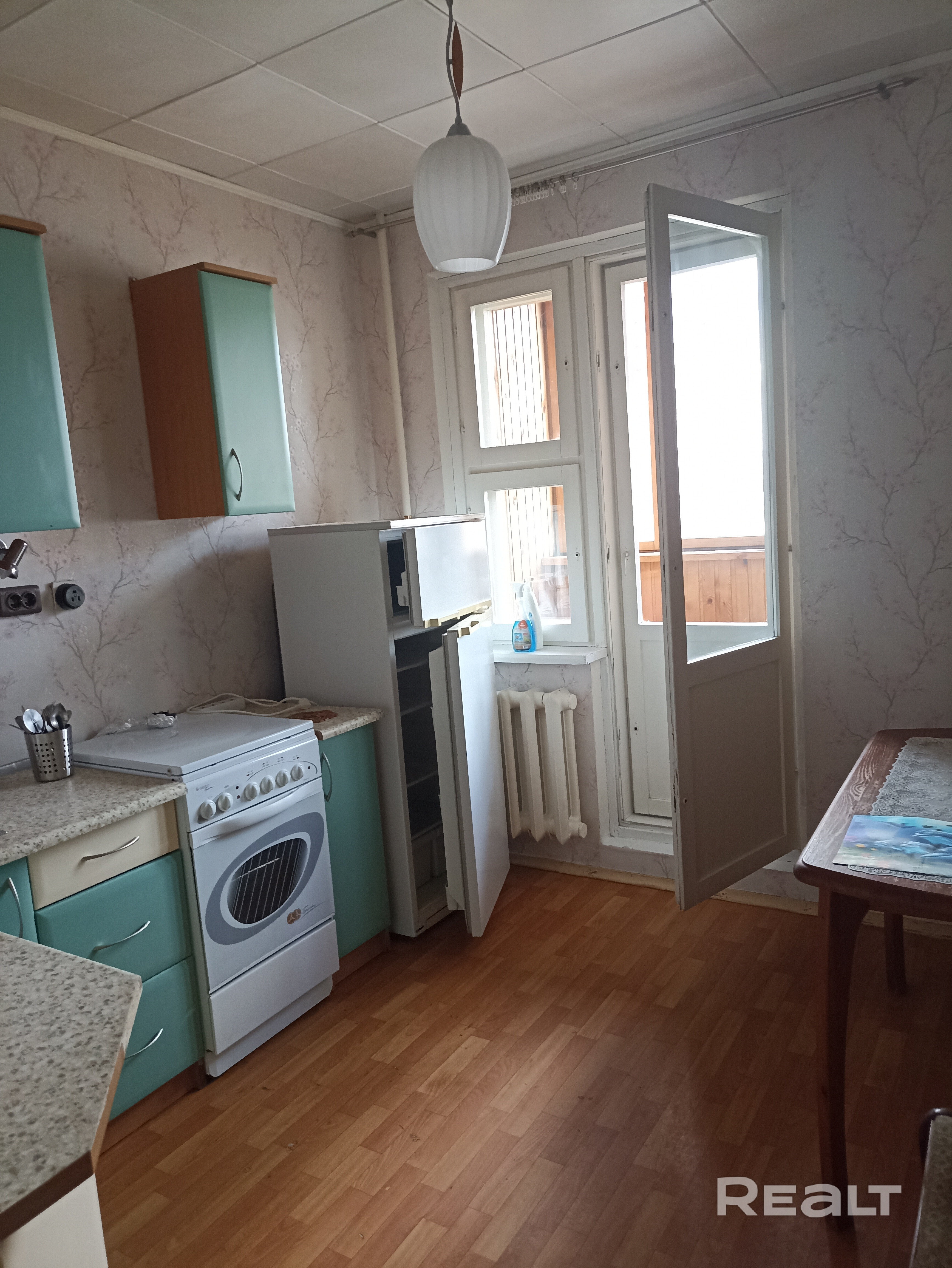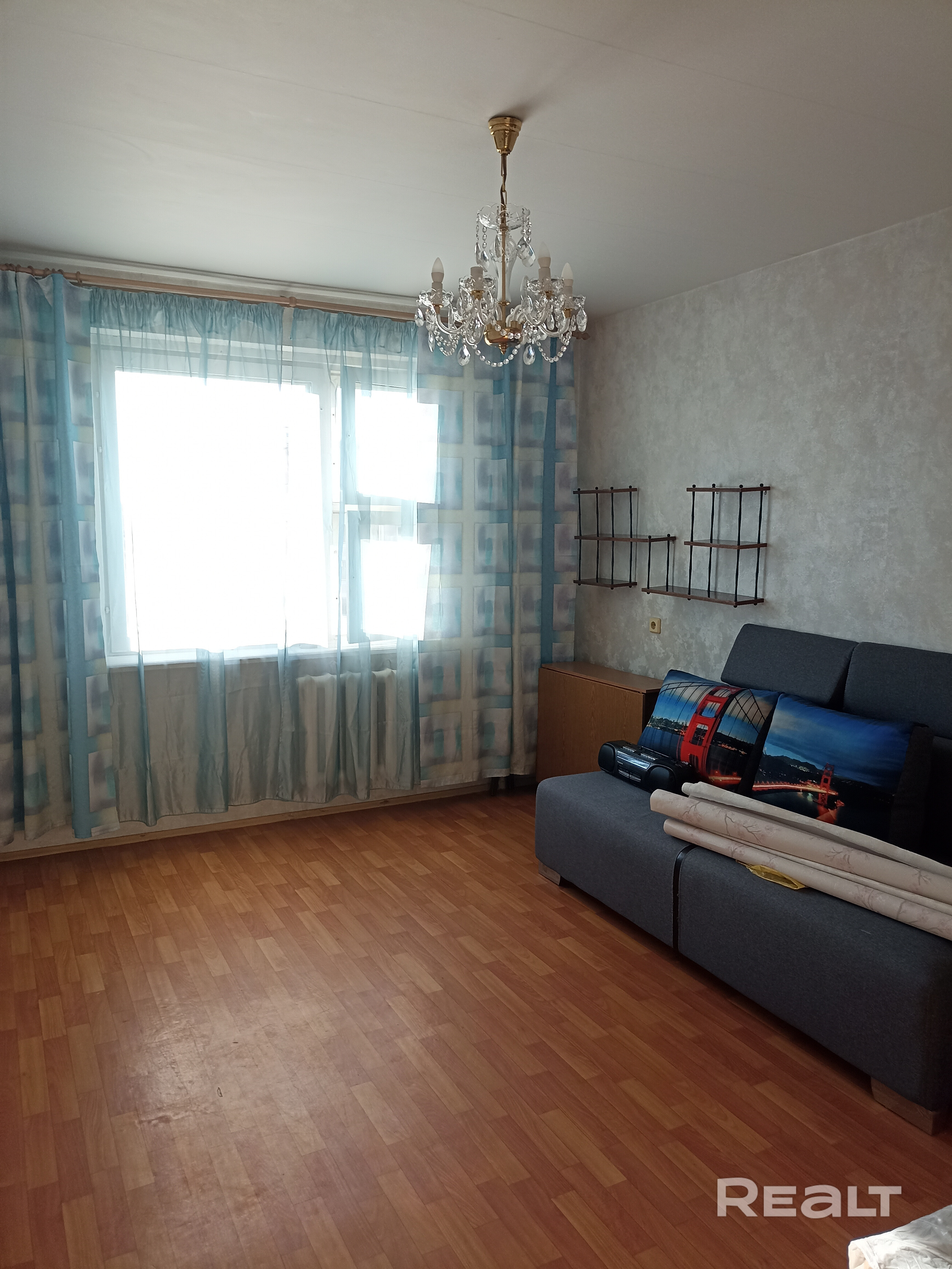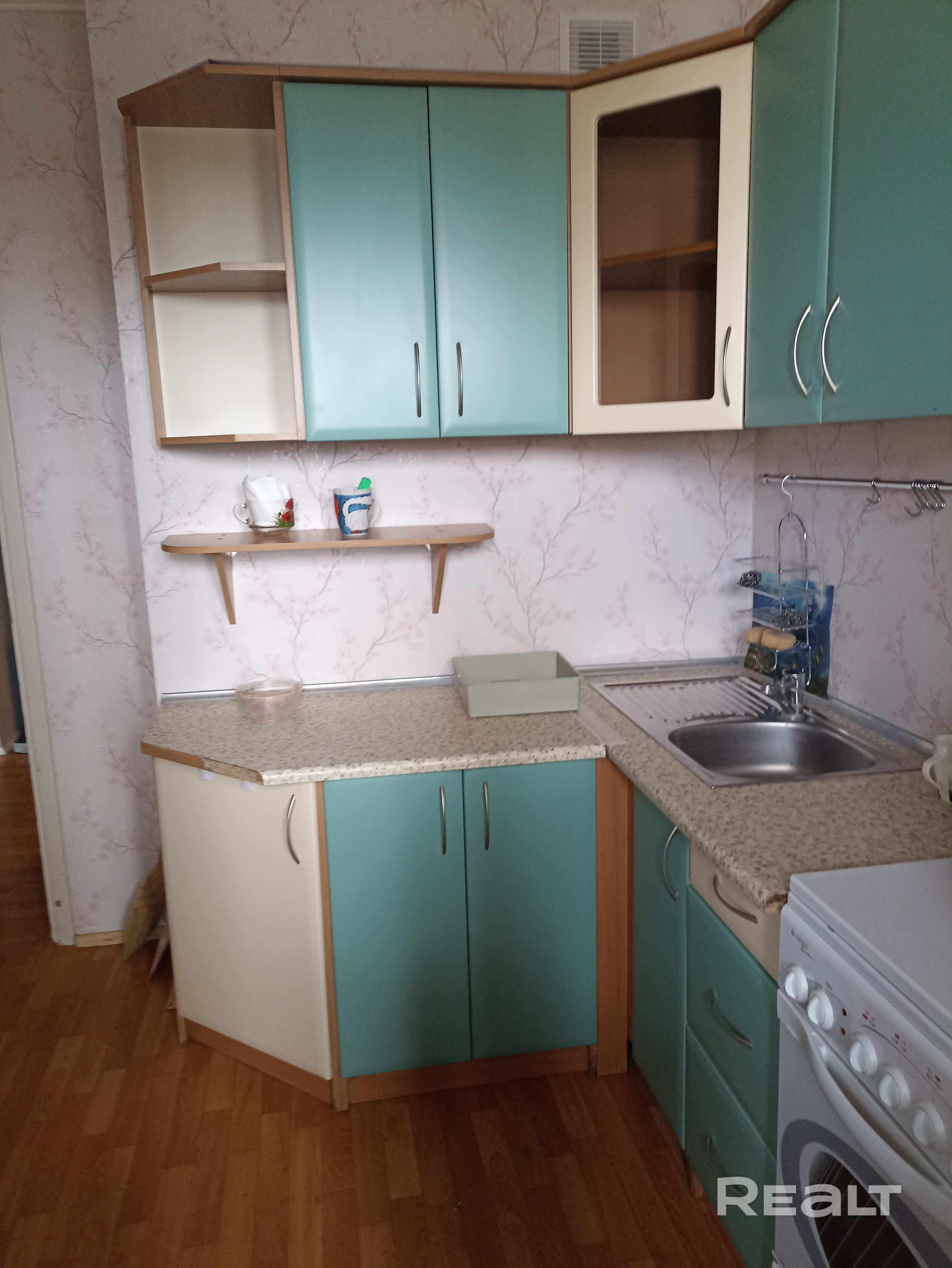 Однокомнатная квартира, мебель частично. Кухня, диван, шкаф купе.