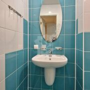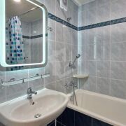Санузел: Раздельный, выполнен в современной плитке. В ванной комнате установлена стиральная машина, есть зеркало с контурной LED-подсветкой.