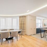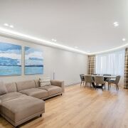 Квартира полностью укомплектована всей необходимой мебелью и техникой (посудомоечная машина, кондиционер, стиральная и сушильная машины, водонагреватель). Два санузла, гардеробная комната - в спальне, много шкафов и мест для хранения. Теплые полы! В доме оборудовано 4 скоростных бесшумных лифта "ORONA" Испания: 2 пассажирских, 2 грузовых. Лифт спускается в подземный паркинг. Квартира сдается только на длительный срок! Рядом с домом (и в самом ЖК) - кафе, рестораны, магазины, клиники, SPA. Через дорогу от жилого комплекса - водохранилище с зонами для отдыха, вело и пеших прогулок. Закрытая территория, электронный контроль доступа, консьерж, видеонаблюдение, служба охраны.