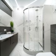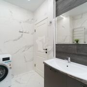 санузел облицован качественной европейской плиткой и оснащен премиальной сантехникой, установлен бойлер;