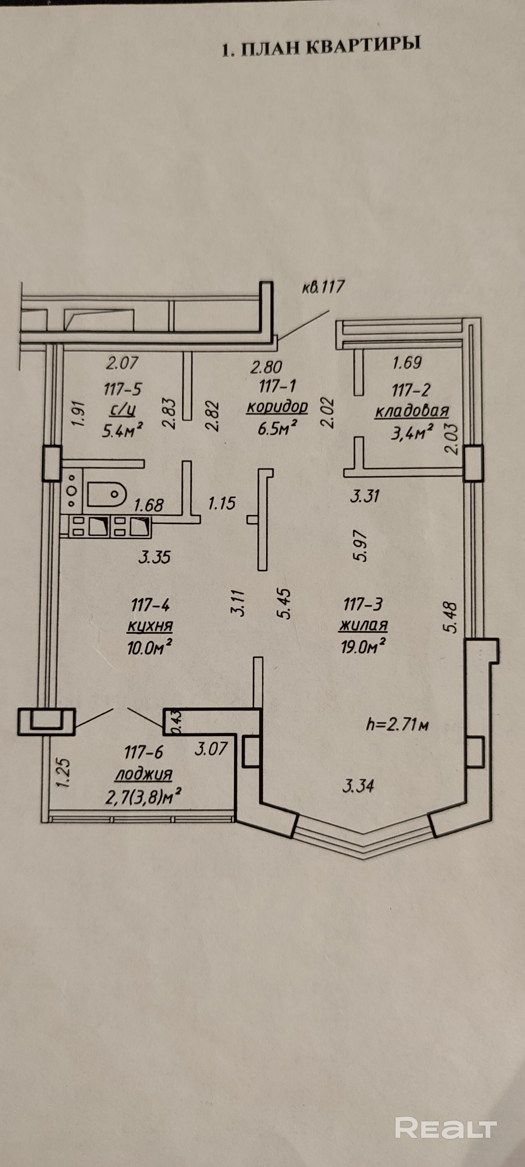 - Площадь кухни