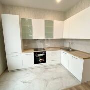 Имеется кухонный гарнитур, духовой шкаф с плитой, холодильник, посудомоечная машина, стиральная машина.