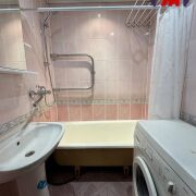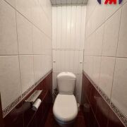 -Санузел раздельный, облицован плиткой в светлой гамме, установлен полотенцесушитель и аккуратная сантехника — всё функционально и поддерживается в хорошем состоянии.