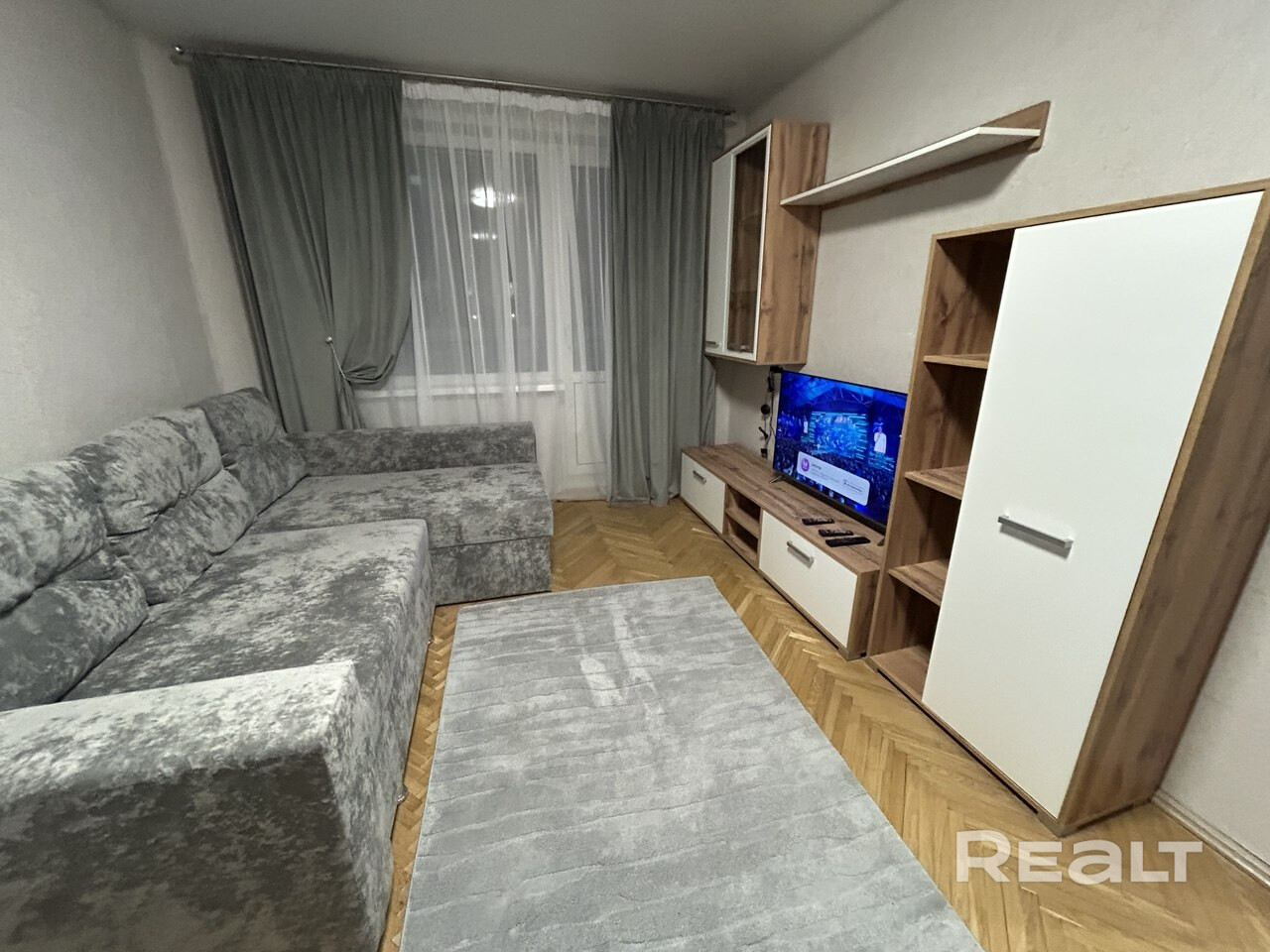 окна выходят во двор, детская площадка. Магазины, почта, аптека, поликлиника, детсад и школа в шаговой доступности. Квартира после ремонта, новая мебель и техника. На полу дубовый паркет. балкон застеклен. В квартире прописан человек, нормальная коммуналка.