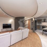 Удобная и рациональная планировка квартиры: прихожая с гардеробной, просторная кухня-гостинная, оборудованная всей необходимой бытовой техникой, три уютных спальни, большая ванная комната и гостевой санузел, лоджия.