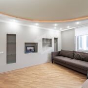 В квартире есть вся необходимая бытовая техника:варочная панель, духовой шкаф, вытяжка, холодильник, посудомоечная машина, стиральная машина, телевизор, электрокамин.