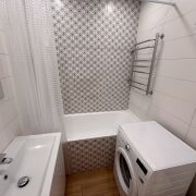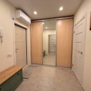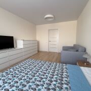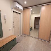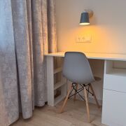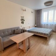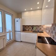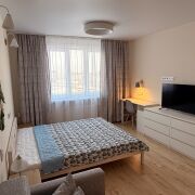 Сдаётся квартира в Минске со свежим ремонтом. Новая мебель и техника, включая холодильник, кондиционер, микроволновую печь и пылесос с аквафильтром. Район зелёный и спокойный, рядом магазины, детский сад, поликлиника, кофейня и транспорт. Просторная кухня, множество мест для хранения, два шкафа-купе, уютная комната, рабочая зона и дополнительное спальное место.