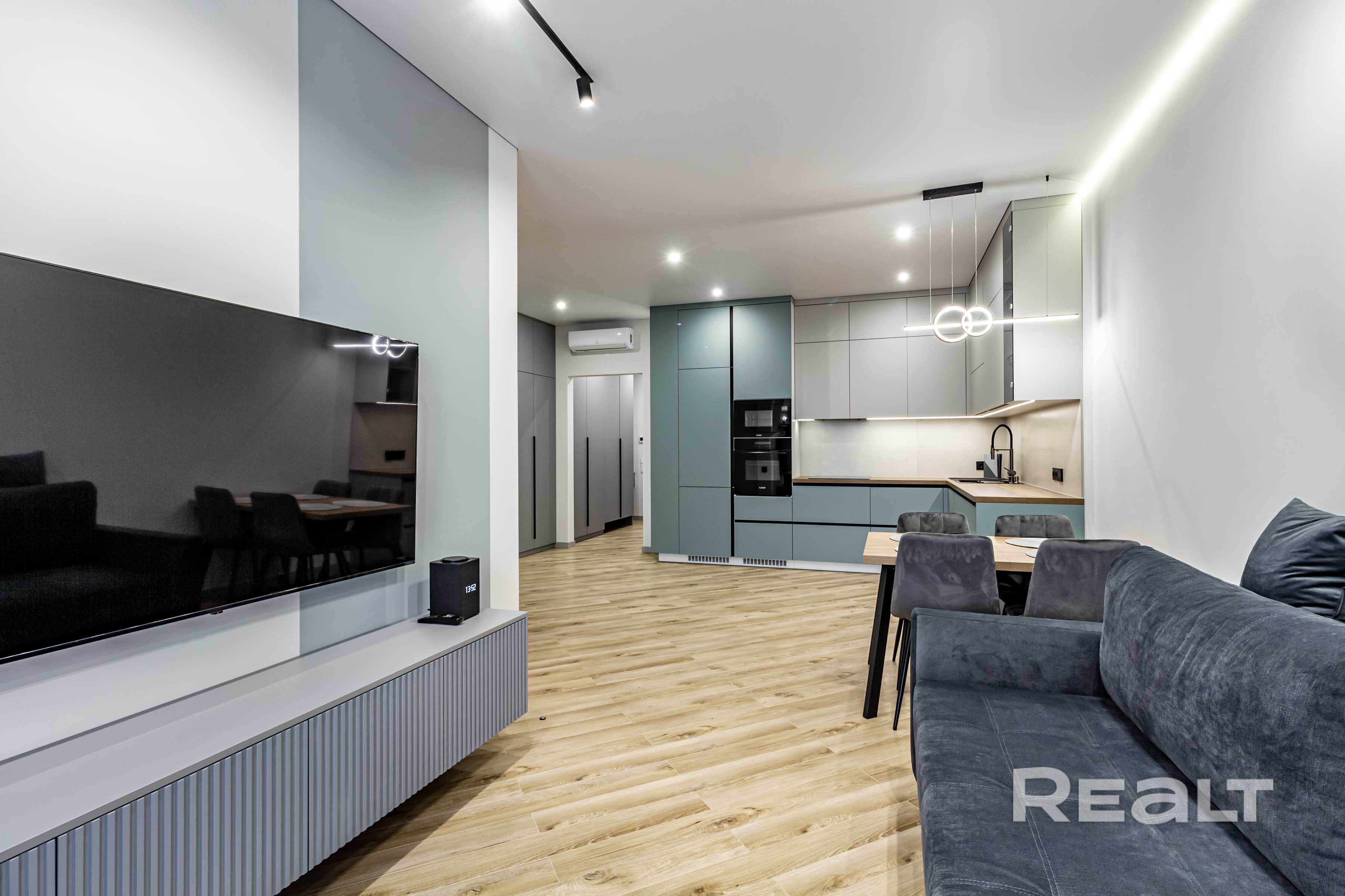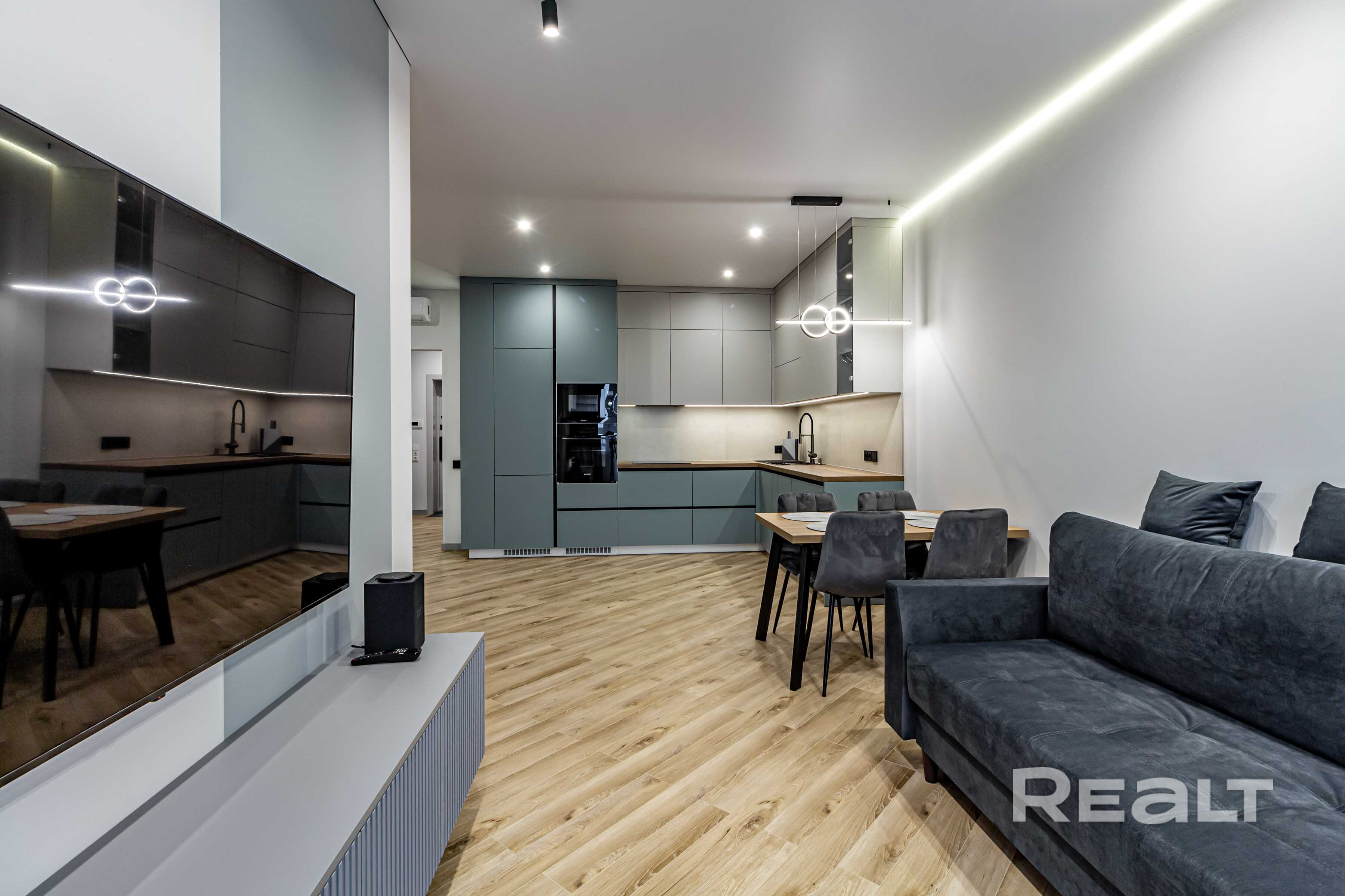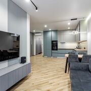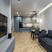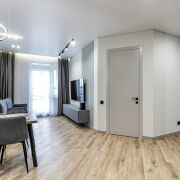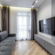 - Уютная гостиная, идеально подходящая для отдыха и встреч. Полы кварц винил Германия, телевизор Samsung 65” последнего поколения. Высокие двери преображают интерьнр и подчеркивают чувство стиля.
