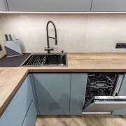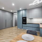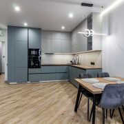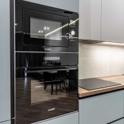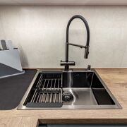 - Современная кухня с удобной планировкой и встроенной техникой Exiteq, Bosh (холодильник, индукционная плита, микроволновая и духовая печь, смеситель на две воды), стрирально-сушильной машиной HOTPOINT. Система очистки воды.
