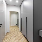 - Огромное количество мест хранения, шкафы оснащены современными модулями (брючница, витрина для ремней и аксессуаров.)