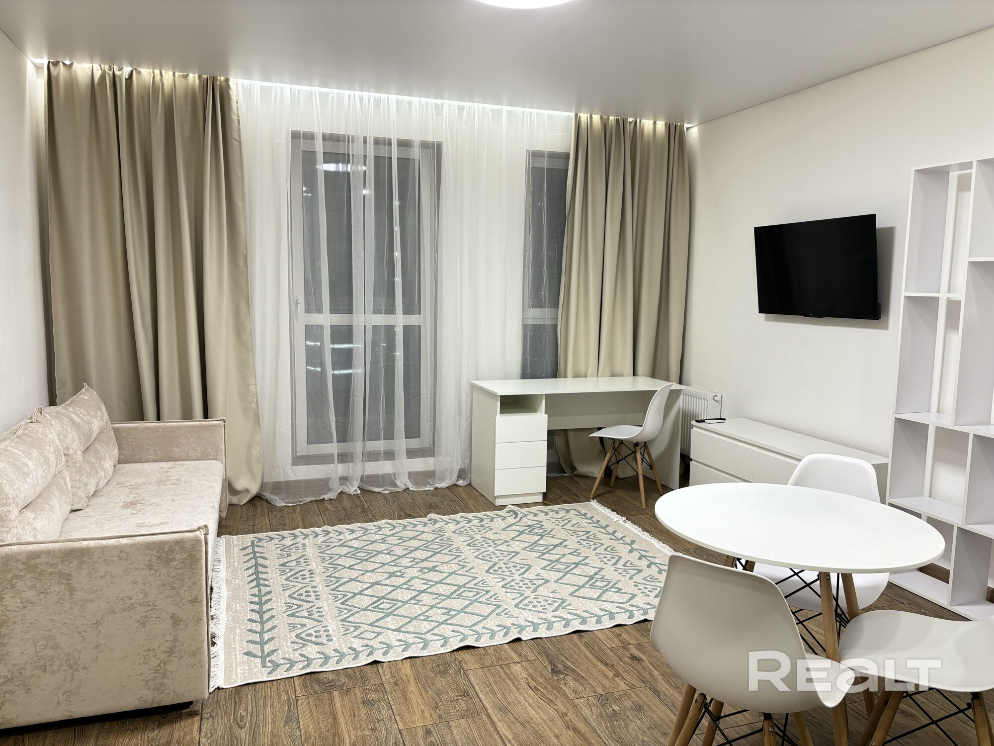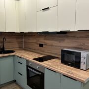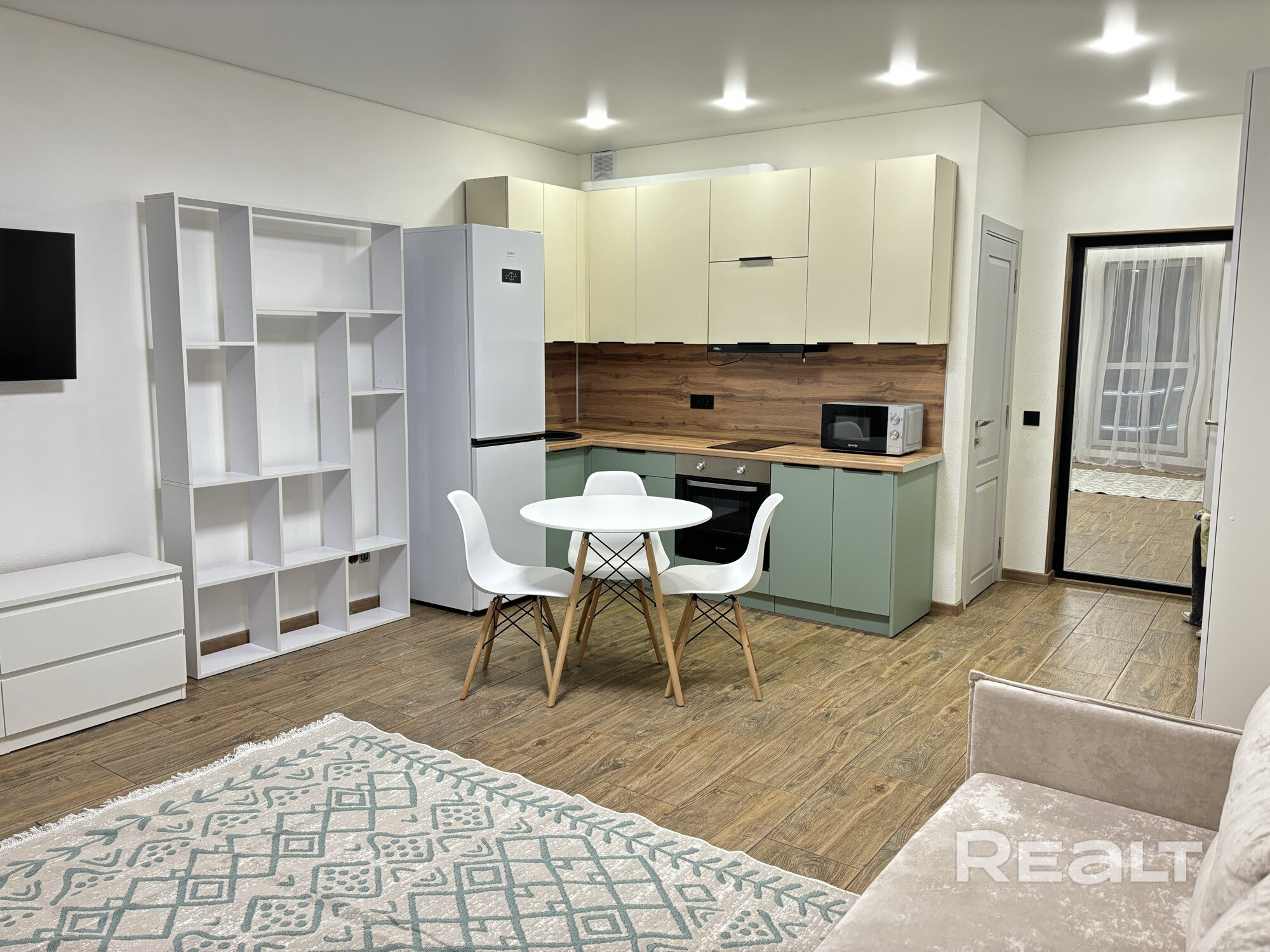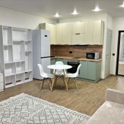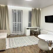 Первое заселение. Оборудованна бытовой техникой: холодильник,микроволновая печь, духовка, чайник, индукционная плита, вытяжка, телевизор, стиральная машина. Есть отдельное рабочее место с выведенными розетками для компьютера и монитора. Сдается на длительный срок с залогом в размере 1 месяца аренды.