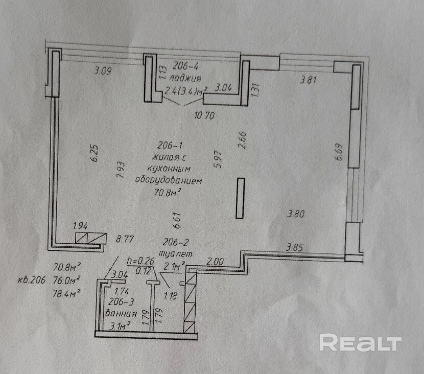 Площадь: 78 кв.м — много света и пространства, частичный ремонт.