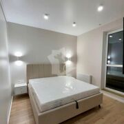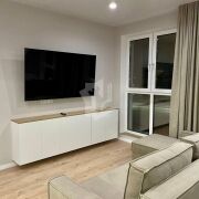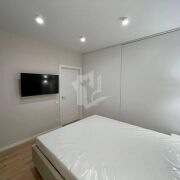 -В спальне большой шкаф-купе с множеством секций для хранения вещей и одежды, также в шкафу установлена стиральная машина. Выдвижная кровать с местом для хранения пастельного. Телевизор 43 дюйма. Выключатели установлены так, чтобы свет можно было включить при входе в комнату, а выключить уже лежа в кровати. В спальне выход на балкон.