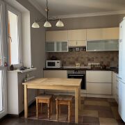 Кухня и гостиная совмещенные (41 м2), есть гардероб, кладовая. 2 лифта (один - грузовой), парковка с достаточным количеством мест.
