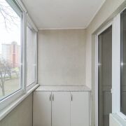 Уютная лоджия: утеплена и оборудована вместительными шкафами для хранения.