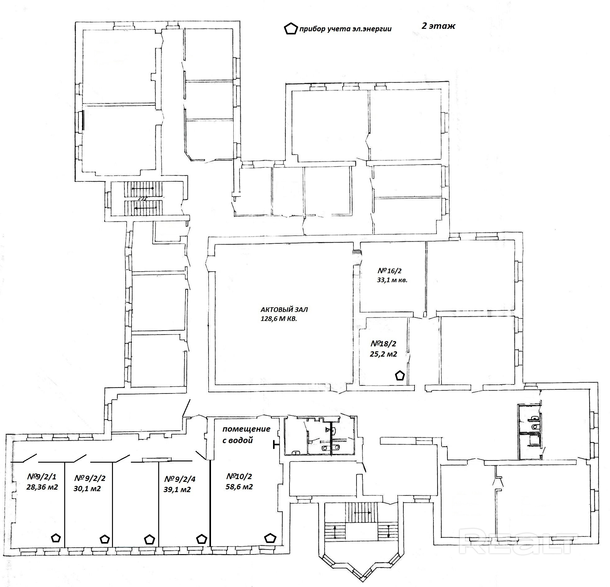 Есть в наличии помещения на первом этаже с отдельным входом, с подключенным водоснабжением и индивидуальными приборами учета электроэнергии.