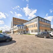 отличные подъездные пути, плоскостная парковка под шлагбаумом возле здания.