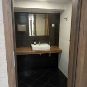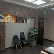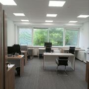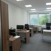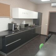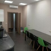 В помещениях выполнен современный ремонт: потолок ARMSTRONG, на полу керамическая плитка, ковролиновое покрытие. Есть оборудованная комната отдыха с кухней, посудомоечной машиной, холодильником, варочной панелью. Из комната отдыха есть выход на большую открытую террасу.