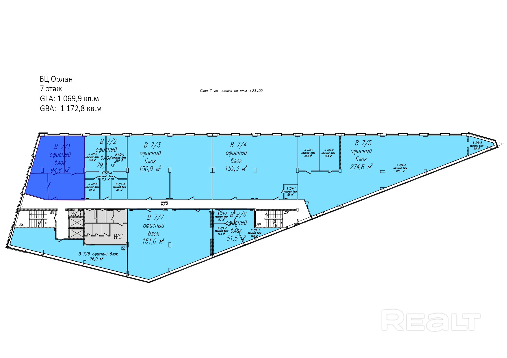 Аренда офисного блока площадью 95 м2 в БЦ "Орлан" (Советский район)