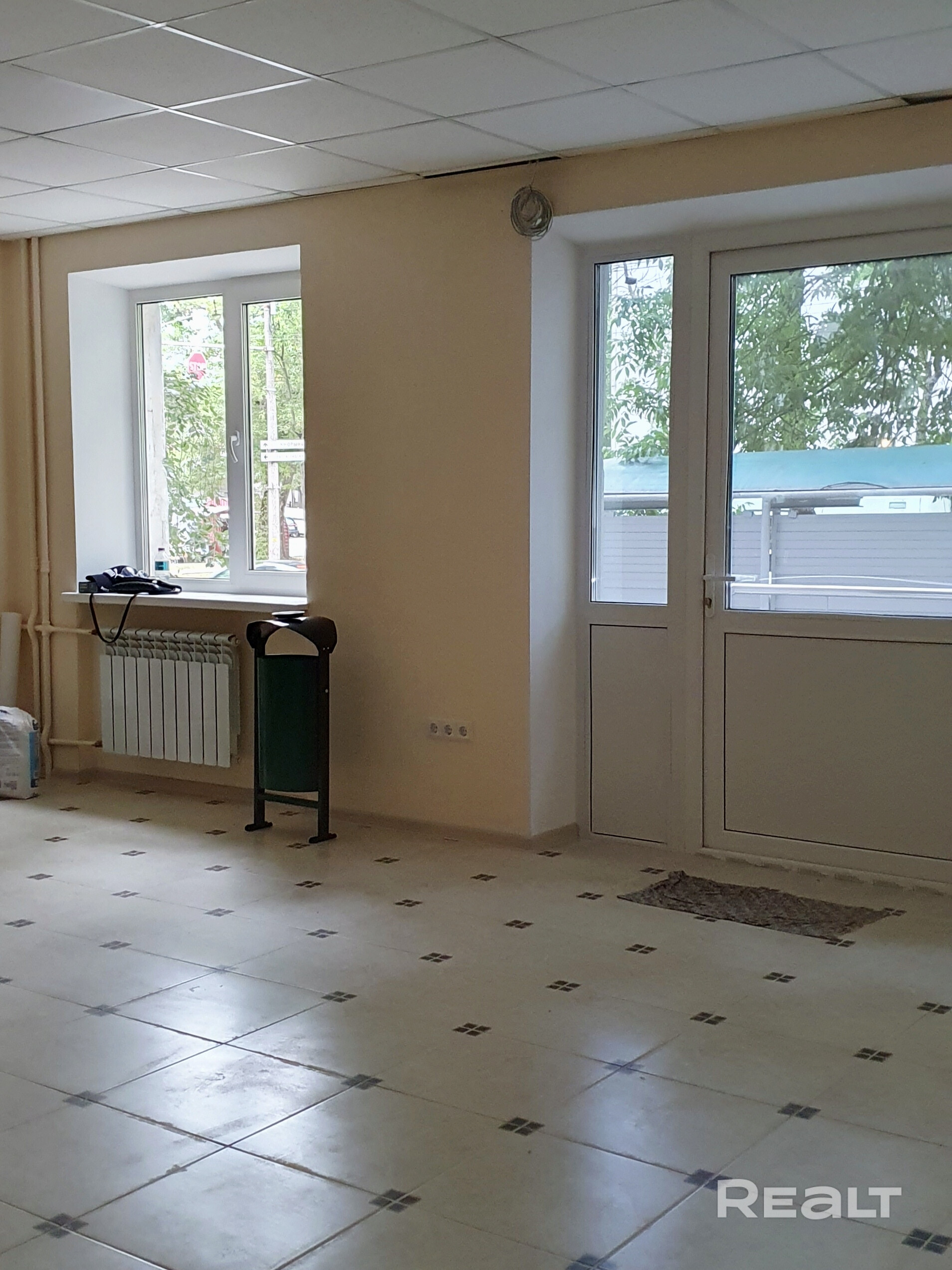 Состояние отличное. Первое заселение. Плитка пол, стены окрашены. Административно торговое, 1 комната. Окна на улицу, рядом остановка общественного транспорта. Хорошая проходимость.
