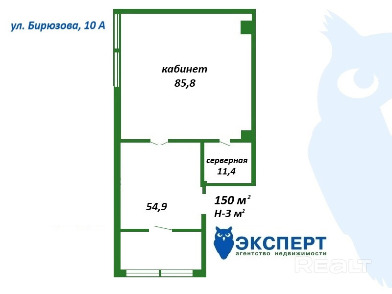 Офис общей площадью 300м2, расположенный по ул. Бирюзова 10А.