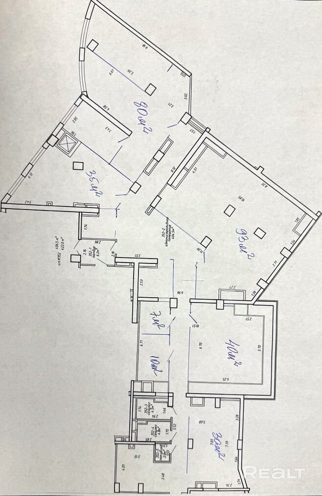 Варианты аренды 422 м2 (офис, с небольшим количеством окон).