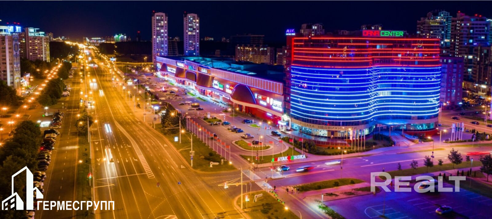 DANA CENTER является неотъемлемой частью многофункционального комплекса «Маяк Минска», расположен рядом с Национальной библиотекой Беларуси и занимает доминирующее положение на проспекте Независимости.