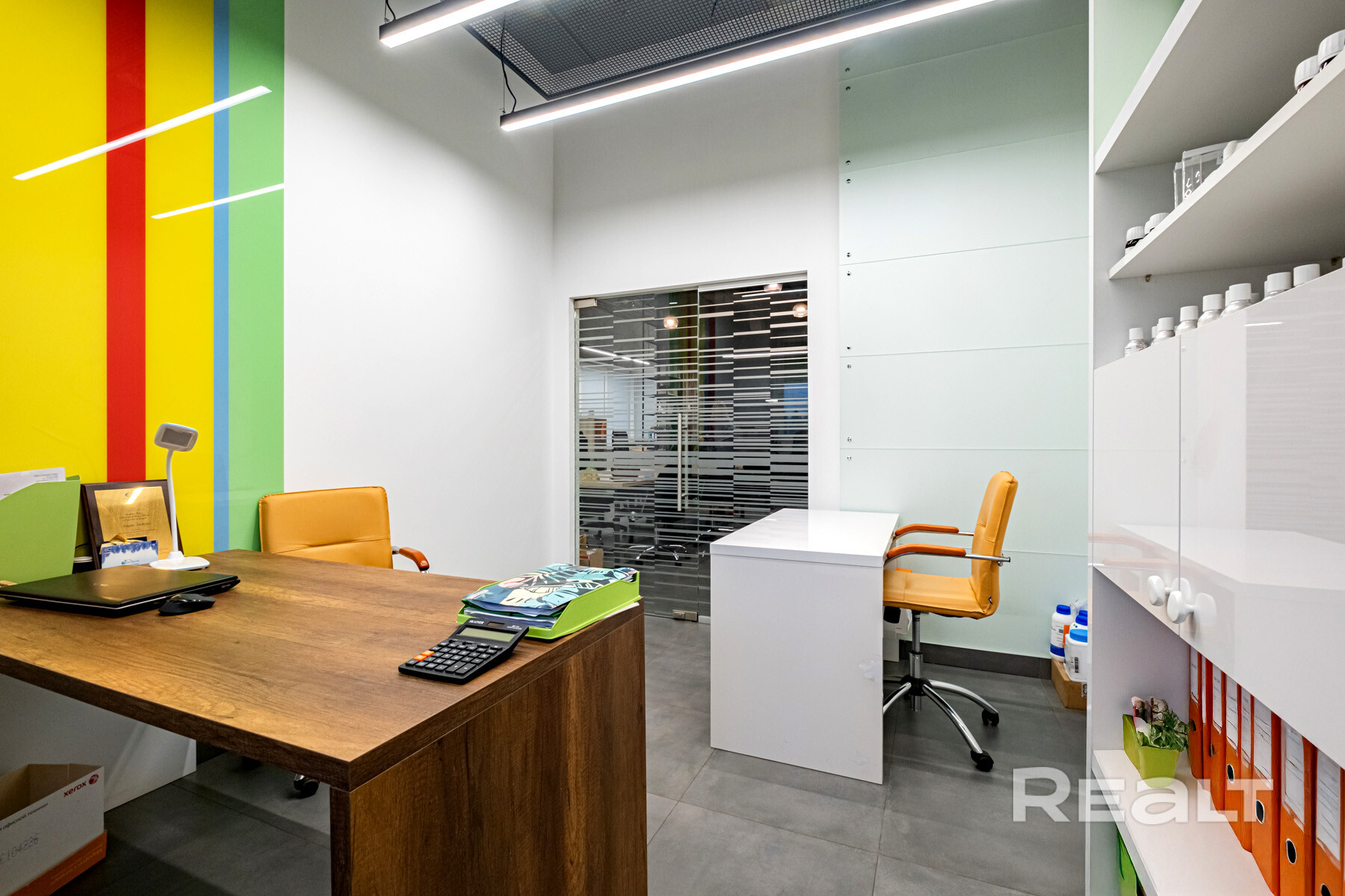 Помещение расположено по ул. П. Мстиславца 13 в ЖК «Маяк Минска» в престижном микрорайоне рядом с торговым центром "Dana Mall".
