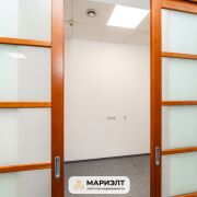 Расположен на 4 этаже бизнес-центра, рядом с лифтом.