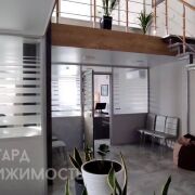 - 180 м2 офисная часть; Высота потолка 5 м, двухуровневый (второй свет), разделён на несколько кабинетов и общий зал; есть кухня, 2 санузла, душевая, интернет и телефонная линия; полностью меблирован, сдаётся вместе с офисной цифровой техникой;