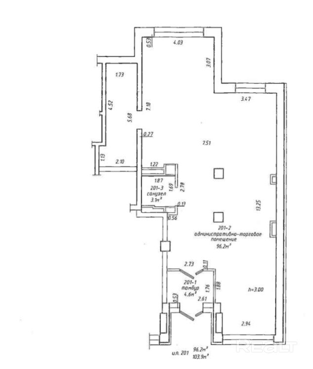 Сдаётся в аренду административно-торговое помещение в ЖК «Петровщина». Второй этаж жилого дома, отдельный вход. Площадь 103.9 кв.м