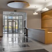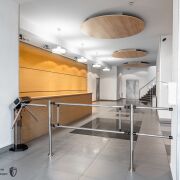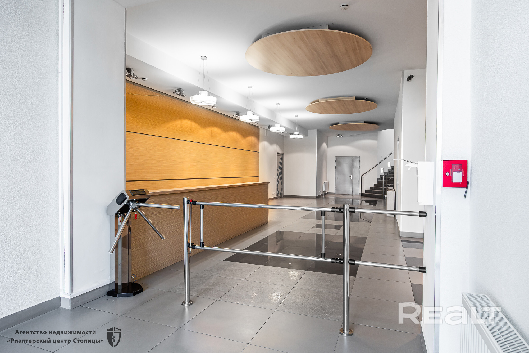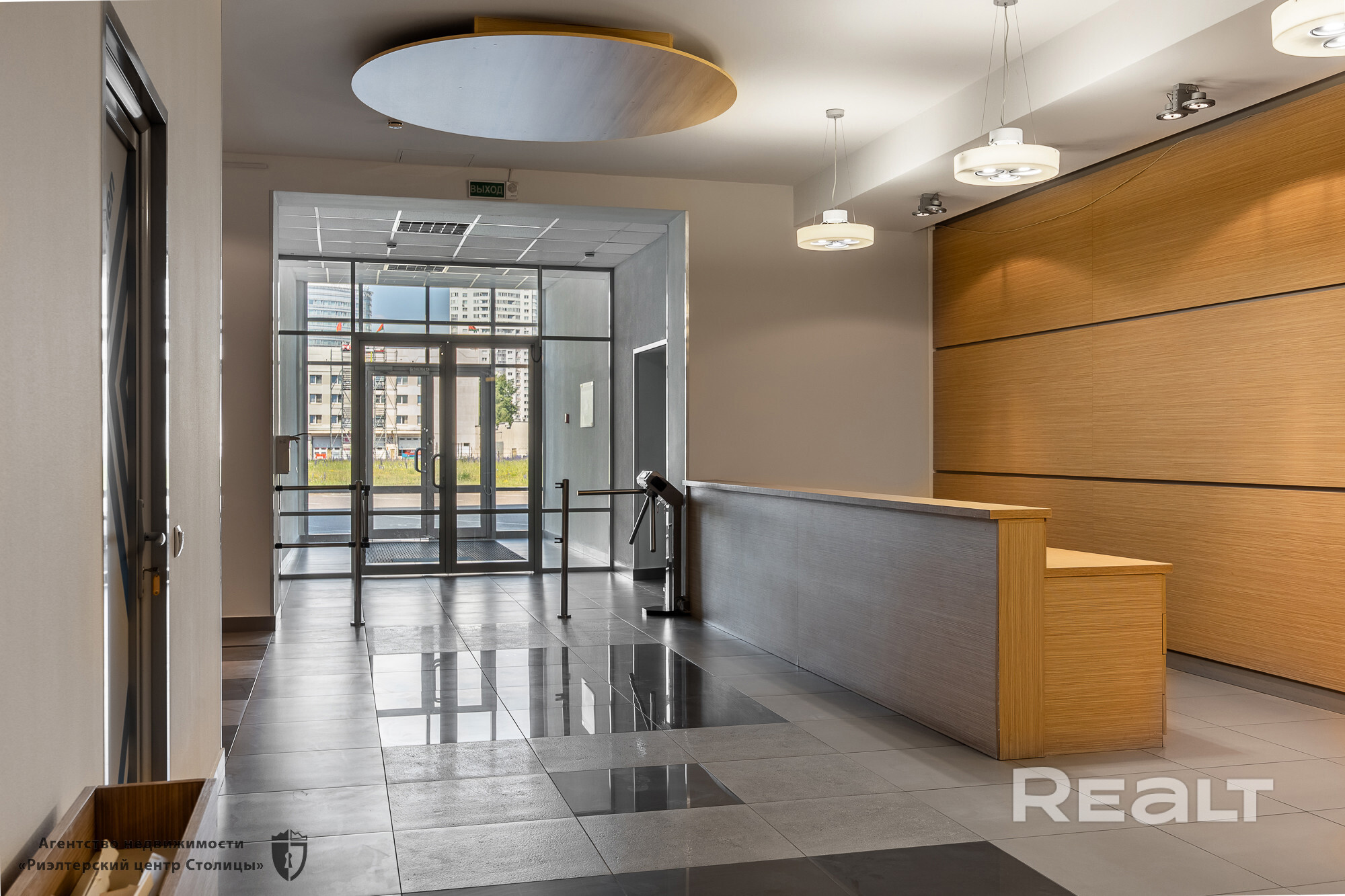 - на первом этаже расположены: зона ресепшен, группа санузлов, комната для организации мини-кухни и лаунж зоны, архивная для документов, кладовая (душевая), гардеробная. Дизайнерская отделка, видеонаблюдение.
