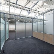 - на втором этаже расположены: open-space, кабинеты, переговорные комнаты и др. Проведены телефонные линии, оптоволоконные сети. Установлена система мультизонального кондиционирования, приточно-вытяжная вентиляция, выполнена разводка к каждому рабочему месту компьютерной сети и интернета (оптоволокно).
