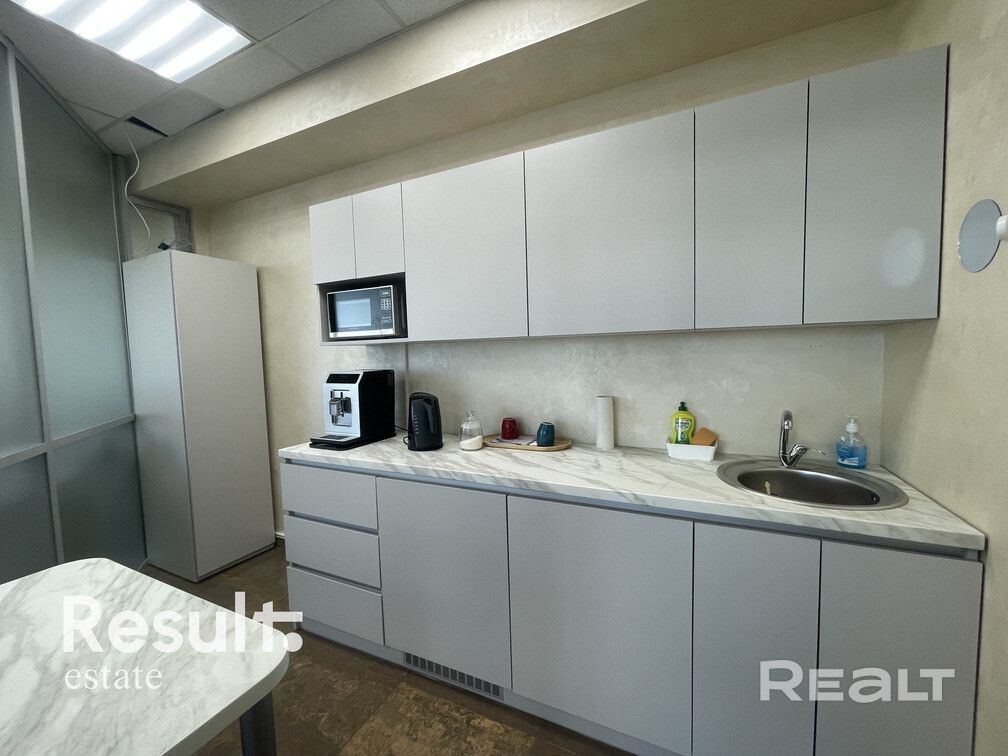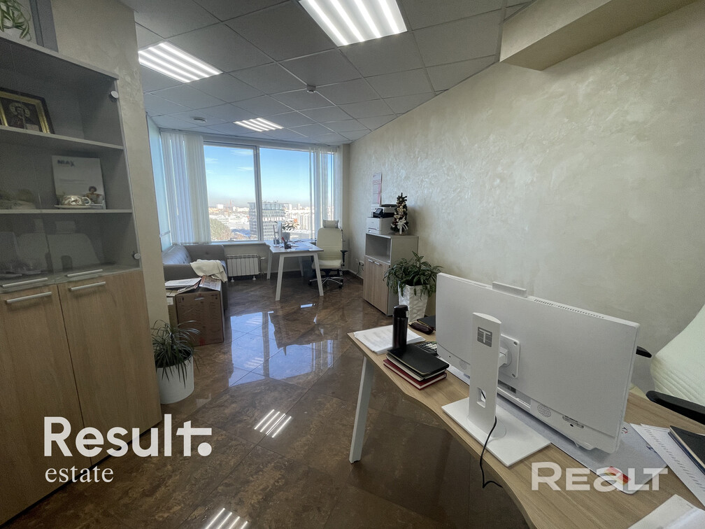 Основная часть офиса — это открытое пространство с хорошим ремонтом расположенное вдоль окон. Кроме него в офисе оборудованы 3 многофункциональных помещения, каждое из которых выполняет функцию кабинета, комнаты переговоров и кухни . Группа раздельных сан узлов на этаже. Бесшумные и быстрые лифты Schneider. Обслуживание здания товариществом. Доступ 24/7.